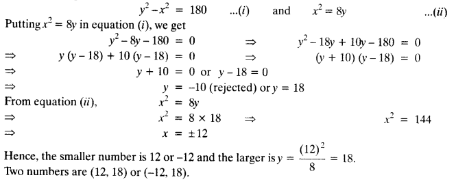The difference of squares of two numbers is 180. The square of the smaller number is 8 times the larger number. Find the two numbers.