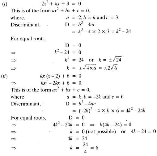 Find the values of k for each of the following quadratic equations, so that they have two equal roots.