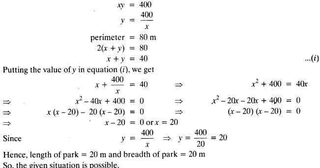 Is it possible to design a rectangular park of perimeter 80 m and area 400 m2? If so, find its length and breadth.