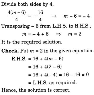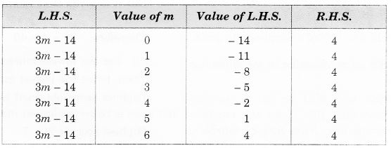So, m = 6 is the solution of the given equation 3m – 14 = 4.