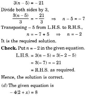 L.H.S. = y – 4 = – 3 – 4 = – 7 = R.H.S.