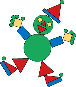 Triangles: Red Squares: Yellow Rectangles: Blue Circles: Green