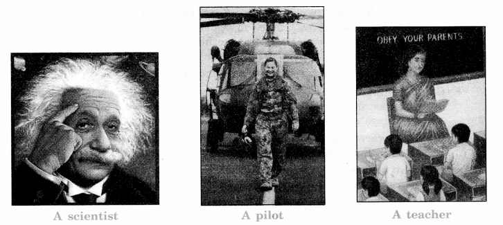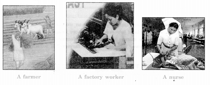 A farmer, a factory worker, a nurse, a scientist, a pilot, and a teacher. (NCERT Page 55) Answer.