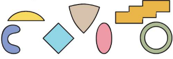 The shapes are made of both curved and straight lines.