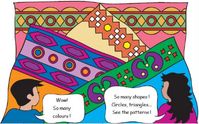 Look at your clothes, your mother’s saris/shawls, rugs and mats. Can you identify some patterns? Draw them in your notebook.