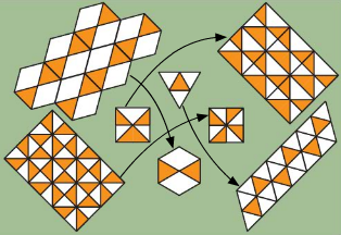 • You can also make your own tiles and use them to make your own tiling patterns. You will find some such tiles at the end of the book that you can cut out, trace and colour.