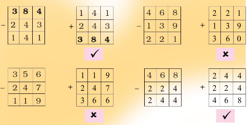 Check Rashi’s subtraction using addition. Give her a ✔ for every right answer.
