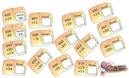 Write the correct room numbers on the letters. Then find the rooms in the above building and circle them.