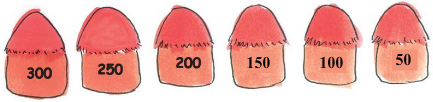 (g) 125, 150, 175, 200, 225 , 250, 275 , 300