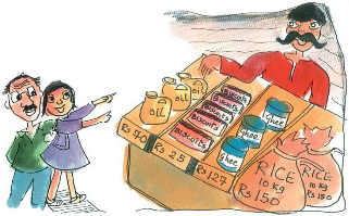 She looked at the prices and said to her grandpa ― (a) Ghee is Rs 102 rupees costlier than biscuits.