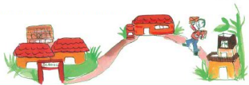 The post office is 1 kilometre from Shahid’s home and 2 kilometres from his school.