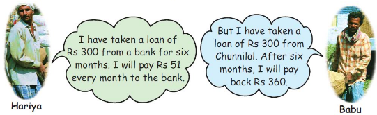 Babu took a loan of Rs 300 from Chunnilal for 6 months to buy a handcart. He paid Rs 360 to Chunnilal after 6 months. Thus, Babu has to pay back more than Hariya for buying the handcart.