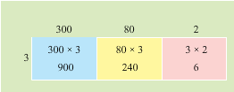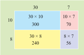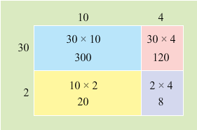 We do it in the following manner: 2 × 30 = 60 2 × 2 = 4