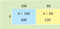 We do it in the following manner: 4 times 8 is 32. 4 times 80 is 320.