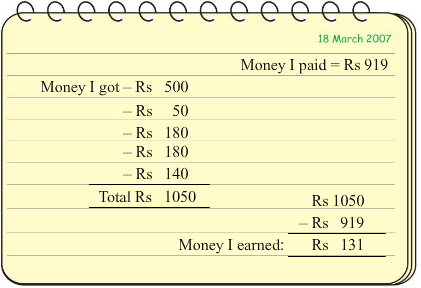 520050180180+1401050Money I earned = Rs 1050 − Rs 919 = Rs 131