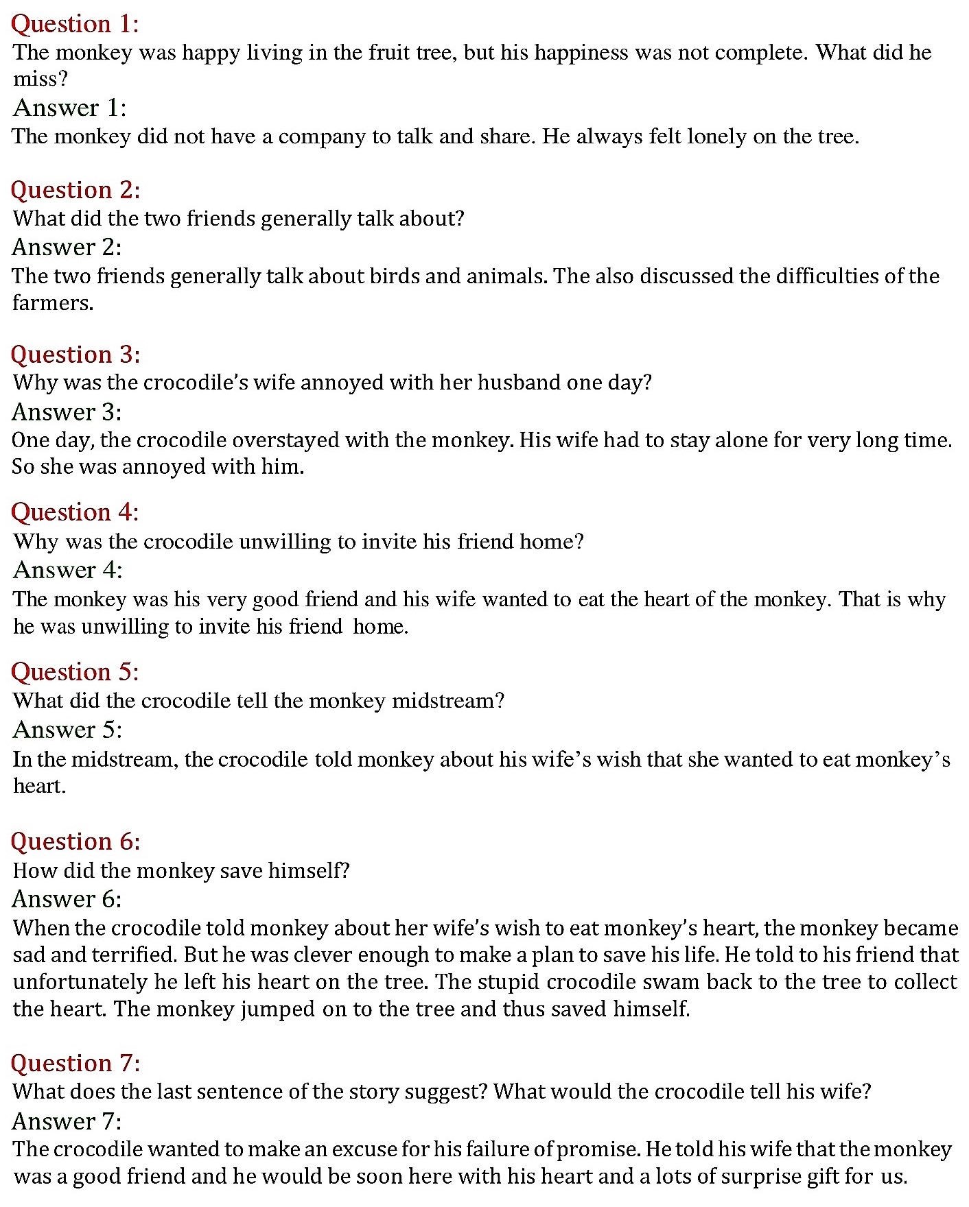 NCERT Solutions for class 6 English Supplementary A Pact with the sun chapter 6 – The Monkey and the Crocodile - A story from The Panchatantra