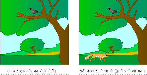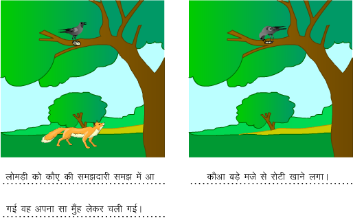 4. कौए ने जैसे ही गाने के लिए मुँह खोला, रोटी नीचे गिर गई।