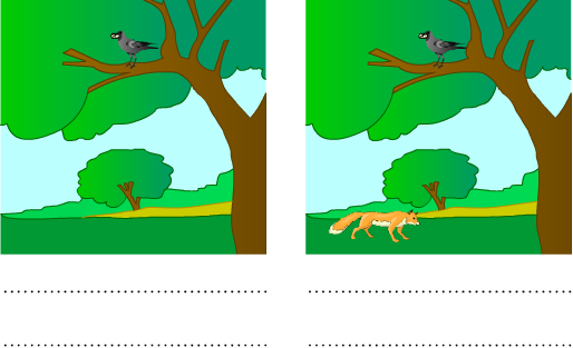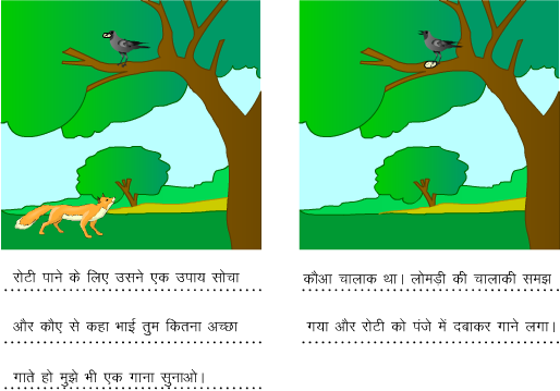 2. लोमड़ी ने सोचा क्यों न मैं इस कौए को मूर्ख बनाकर रोटी ले लूँ।