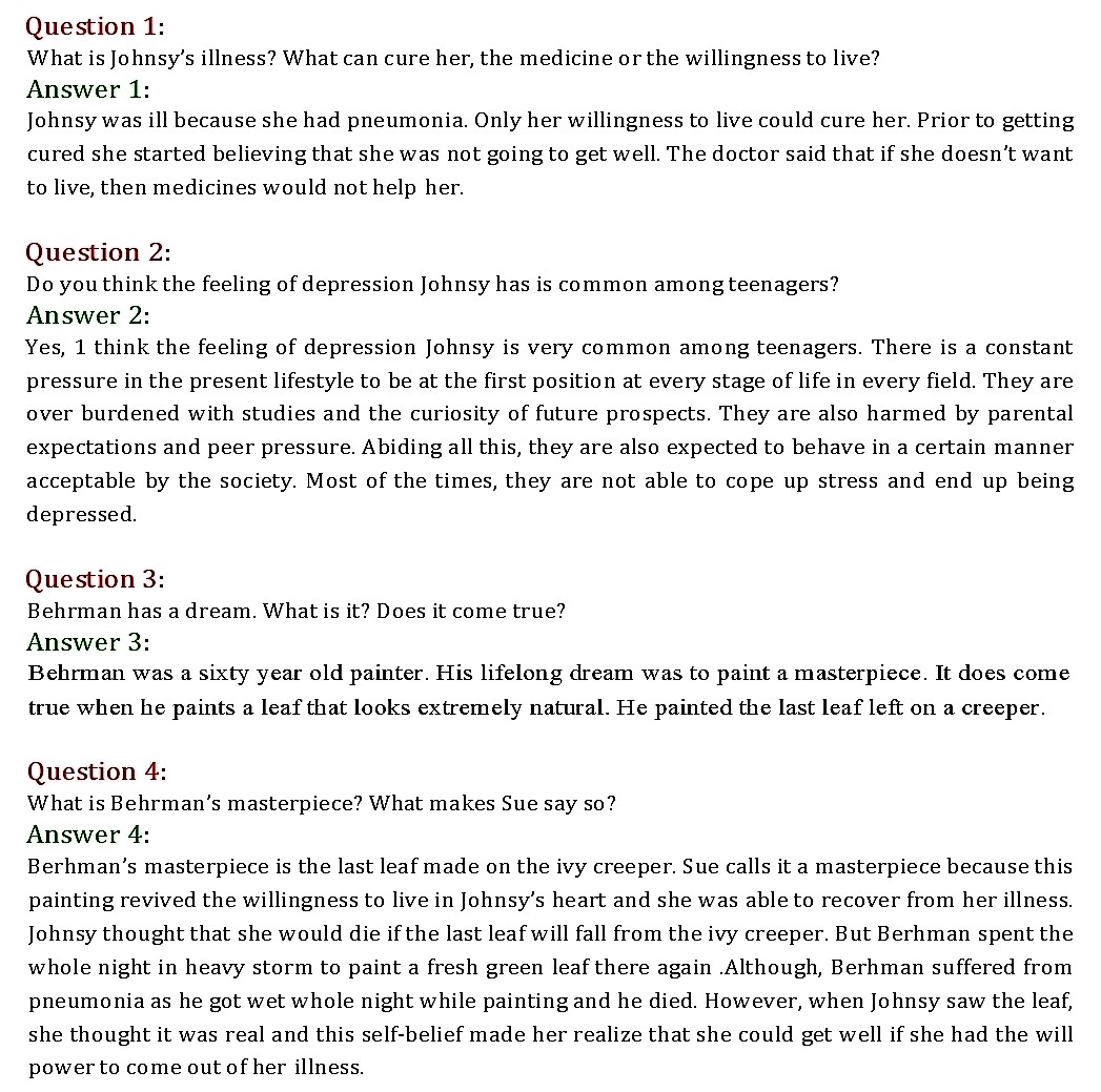 NCERT Solutions for class 9 English Supplementary Moments chapter 7 – The Last Leaf by O. Henry