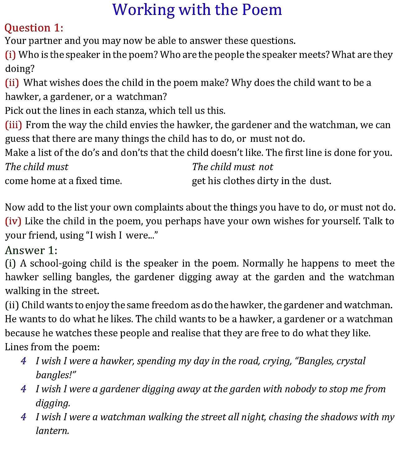 NCERT Solutions for class 6 English Honeysuckle Poem 7 – Vocation by RABINDRANATH TAGORE
