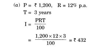 (a) Principal = ₹ 1,200 at 12% p.a.