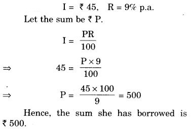 If Meena gives an interest of ₹ 45 for one year at 9% rate p.a. What is the sum she has borrowed?