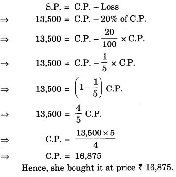 Juki sells a washing machine for ₹ 13,500. She loses 20% in the bargain. What was the price at which she brought it?
