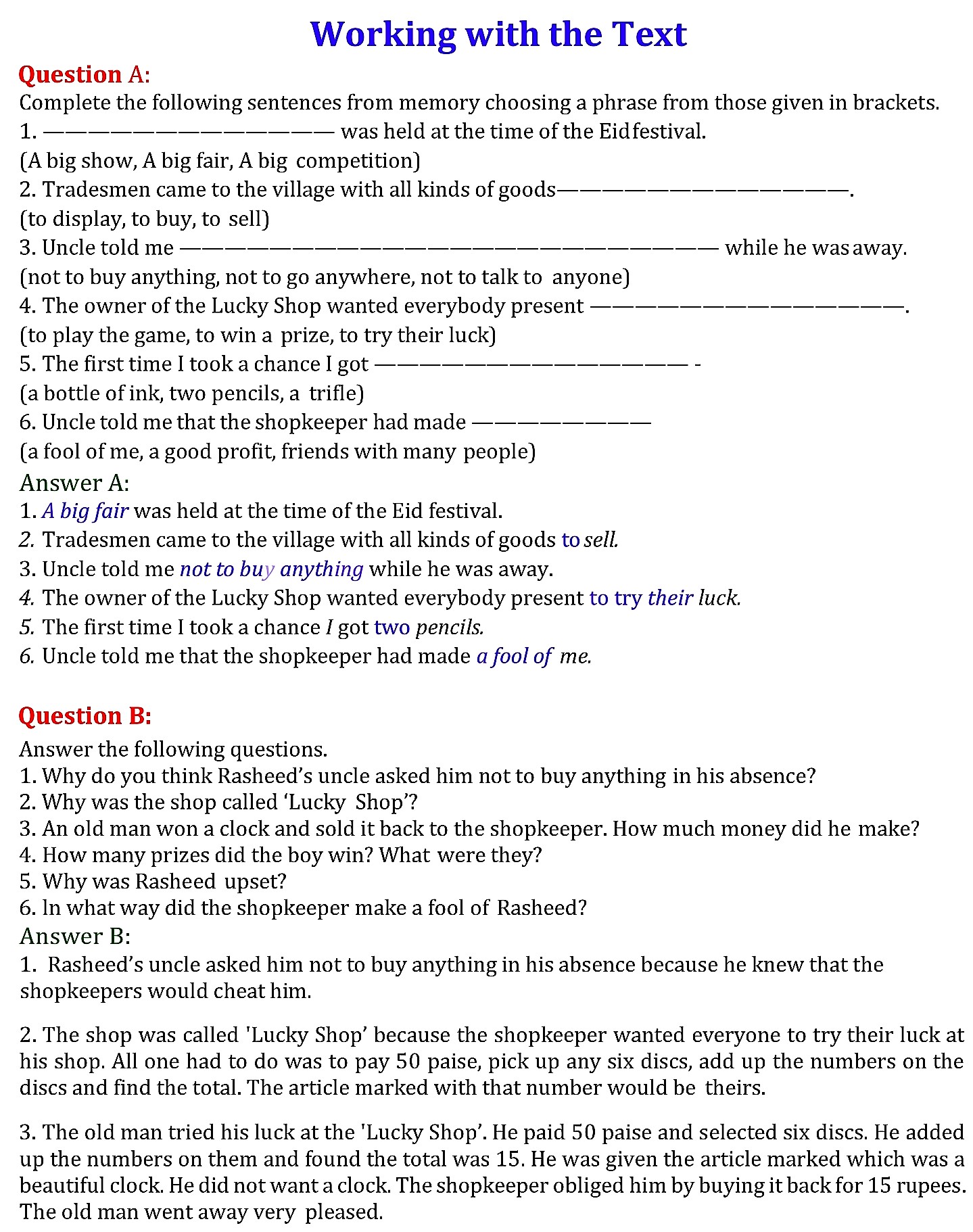 NCERT Solutions for class 6 English Honeysuckle chapter 8 – A Game of Chance by Not Known