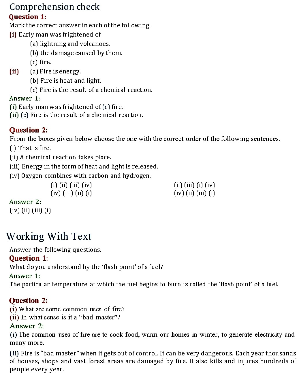 NCERT Solutions for class 7 English Honeycomb chapter 8 – Fire: Friend and Foe by Mulk Raj Anand