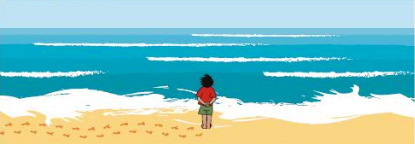 Bala is standing on the sea-coast and looking at the vast sea. The sea looks endless.