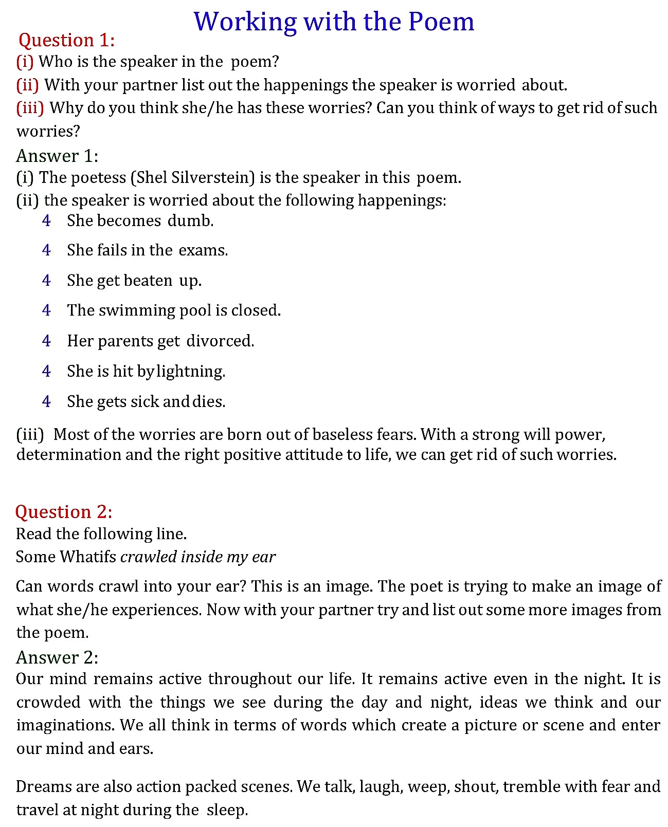 NCERT Solutions for class 6 English Honeysuckle poem 8 – What if by SHEL SILVERSTEIN