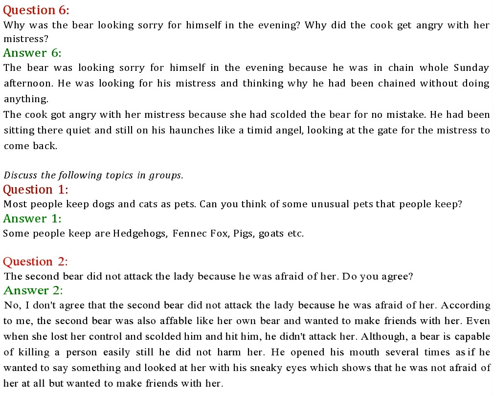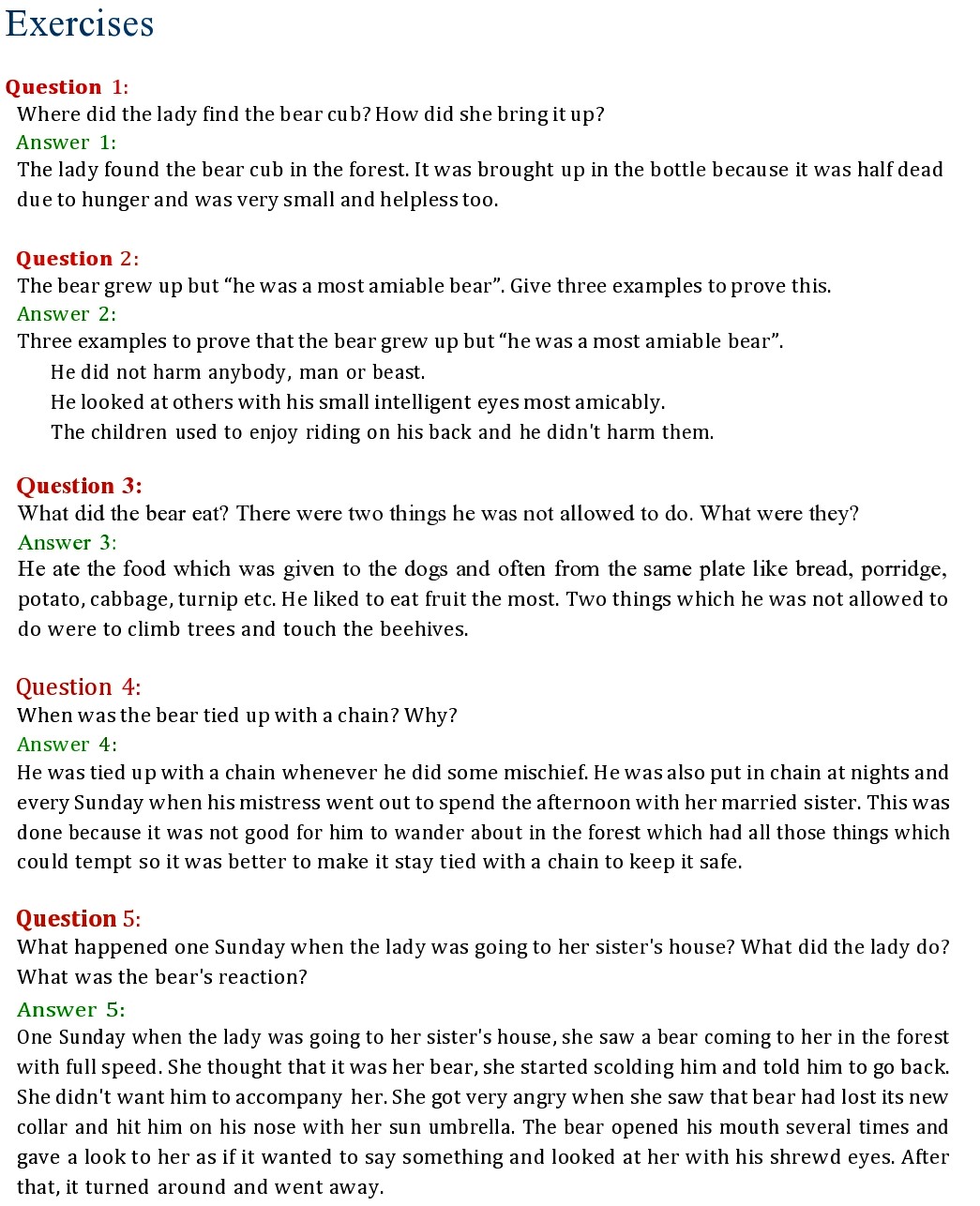NCERT Solutions for class 6 English Supplementary An Alien Hand chapter 8 – The Bear Story by AXEL MUNTHE