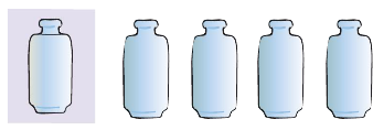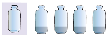 Sharing Milk This bottle is full of milk and it holds one litre. The milk is put into 4 other bottles so that each bottle has