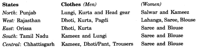 Choose another set of five states from each of these regions and prepare a list of clothes that are generally worn by women and men in each. Discuss your findings.