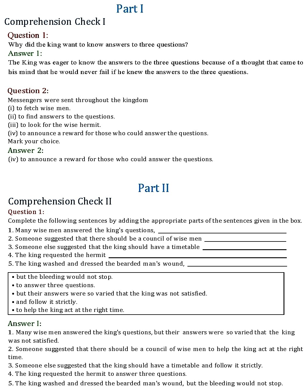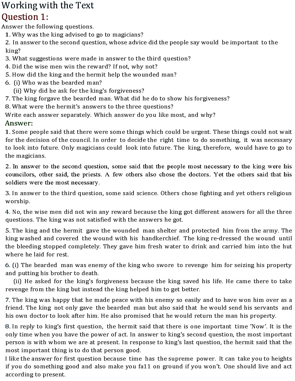NCERT Solutions for class 7 English Honeycomb chapter 1 – Three Questions by LEO TOLSTOY
